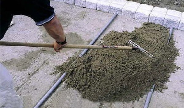 Следующий шаг – подготовка основы. Место между бордюрами необходимо избавить от дерна, корневых фрагментов и произвести подготовительное сглаживание плоскости. В случае если земля рассыпчатая – уплотнить. В плоскость засыпаем подушку основы, которая складывается из 2-ух пластов – главный: гравий, щебенка либо шлак; последующий – песок.