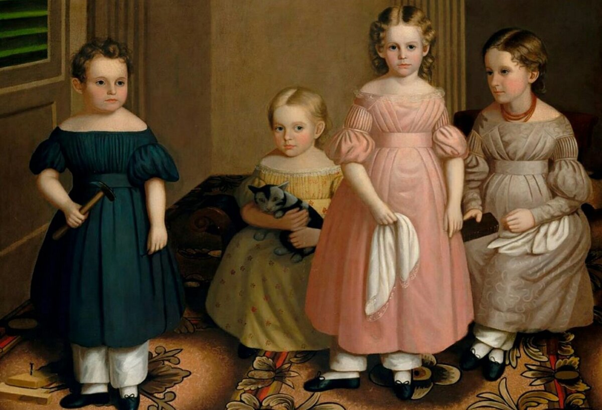 Эта традиция зародилась в Европе в далёком 16 веке. Платье тогда не считалось признаком гендерного различия между мальчиком и девочкой. Платье всем детям надевали с целью показать, что ребенок находиться на попечении матери, под ее юбкой. Платья были очень длинными и вычурными, всячески украшенными рюшами, брошами. В платье детям было проще справлять нужду. А также платье можно было сшить на вырост и перешить в случае необходимости на подросшего ребенка. Но несмотря на то, что гендерное различие не приветствовалось, платья мальчиков и девочек все же отличались расположением и цветом пуговиц. Интересный факт. Обратите внимание на портреты детей и попробуйте найти мальчиков. Помимо платьев мальчики носили длинные локоны. Девочкам делали прямой пробор, а мальчикам косой и иногда немного состригали чёлку. Первые штаны мальчики одевали только когда к их воспитанию подключался отец или гувернер. Чаще это происходило к 6-8 годам. Для любого мальчика это было долгожданное событие и по этом