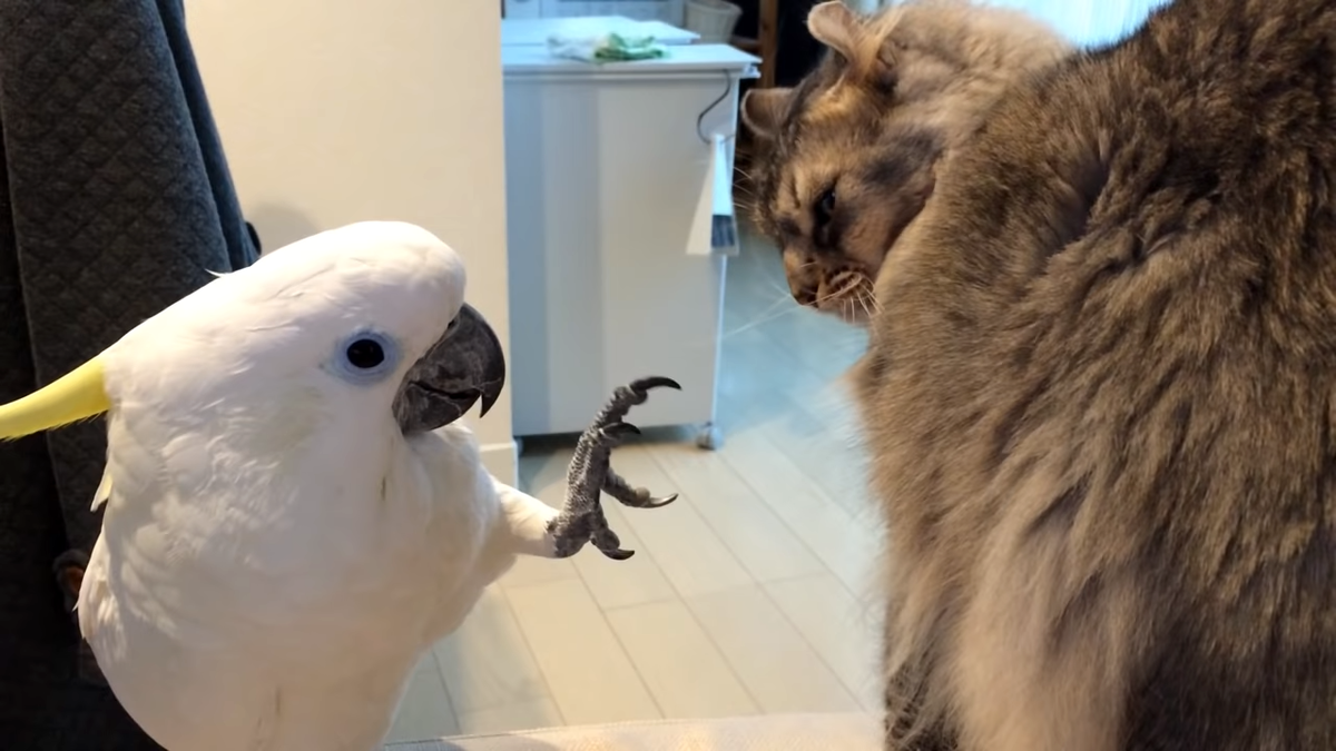 Рассказ прислан нашим читателем в рамках четвёртого сезона акции «Заработай на своей истории о птицах». Ссылку на условия акции вы найдете внизу страницы. Наша забавная история с попугаем приключилась после покупки кота Марка. Ох, и наглая он морда. Вредный, дерзкий и считает себя в доме хозяином. Иногда он шкодничал так, что волосы дыбом стояли. Пузико почесать можно быть только, если он в хорошем настроении. Иначе можно было хорошенько получить лапой. Как-то ко мне в гости приехал одноклассник Юра. Мы вечером сидели на ужином болтали, и Юра заметил наглые манеры нашего кота. Я начала жаловаться на него. Не знаю уж, что делать – говорю. Юра подумал и предложил отдать его на перевоспитание Ираклию. Оказалось, что Ираклий – это его какаду. Он научился говорить и уже воспитал Юрину кошку – очень своенравную даму. Было решено провести эксперимент. Ради него я согласилась на неделю приютить у себя Ираклия. Юра заверил, что попугай без проблемный и контактный. Пообещал заглядывать каждый