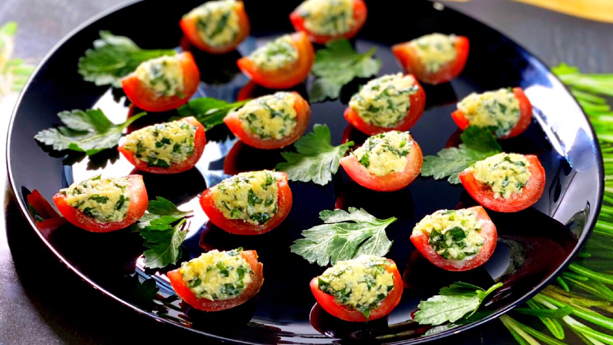 Закуска из помидоров черри с сырной начинкой, разлетается быстрее, чем горячие пирожки)