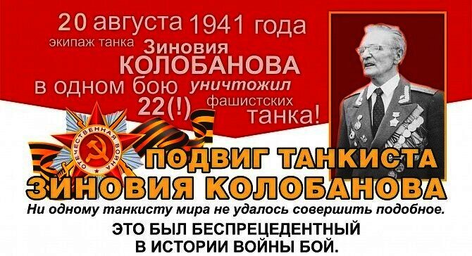 Этот очерк посвящается светлой памяти подполковника в отставке Зиновия Григорьевича Колобанова и его сослуживцев, отличившихся в достопамятном бою на подступах к Красногвардейску 20 августа 1941 года. Эти танкисты, как и многие другие Герои Великой Отечественной войны, в канун 80-летия Великой Победы так и не получили заслуженной ими медали «Золотая Звёзда» и официального звания Героя Советского Союза.