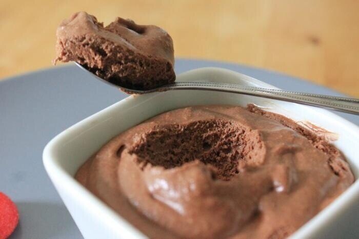Шоколадный мусс на основе обезжиренного творога (100гр - около 140 ккал) Ингредиенты: - йогурт - 100г. - творог обезжиренный - 300г. - сахар - 3ст.л. - какао - 1,5ст.л. - желатин-15г. Приготовление: 1. Йогурт, творог, сахар и какао взбить в блендере до однородного состояния. 2. Желатин замочить в холодной воде на 10-15мин. 3. Поставить кастрюлю с желатином на огонь, довести до кипения. 4. Добавить желатин в шоколадный крем, тщательно перемешать. 5. Миксером взбивать крем 1-2мин. 6. Налить мусс в креманки, поставить в холодильник на 2-3 часа. По желанию можно добавить орехи Рецепт на 4 порции, на 100г. около 140 ккал. По такому рецепту можно делать и фруктовый мусс, заменив какао любимыми фруктами или ягодами. Приятного аппетита!