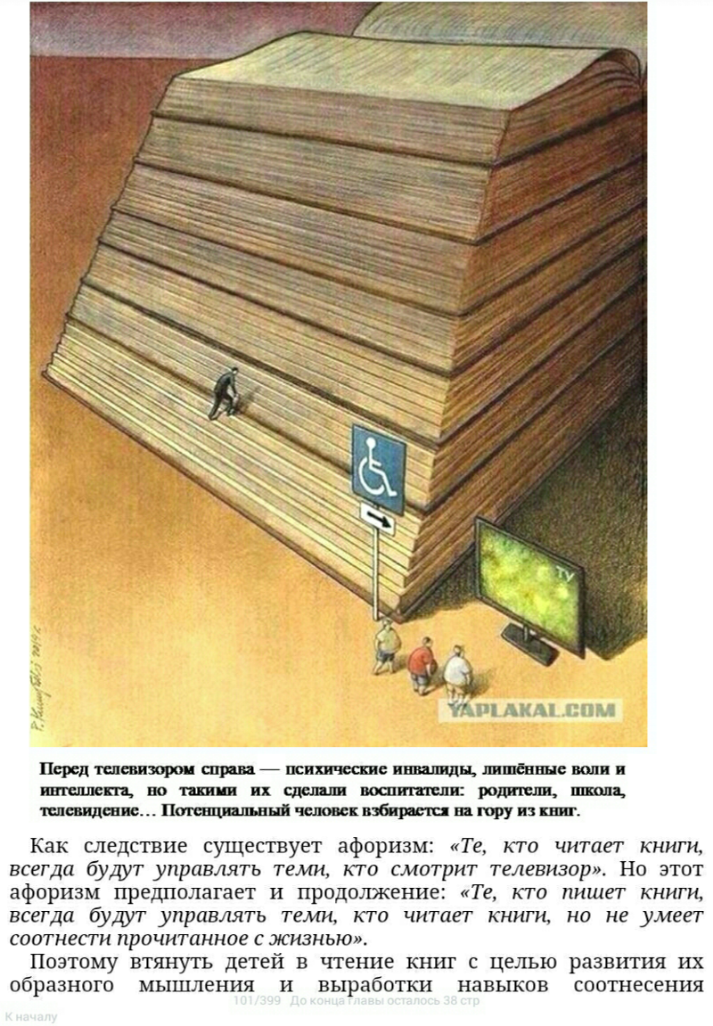 При чтении книг, встречаешь очень ёмкие фразы и выражения, в которых в двух, трёх строчках может быть скрыт смысл или вывод целого поколения. Которые иной раз несут в себе больше смысла чем целая книга. Здесь я представляю некоторые скриншоты из книг, которые мне очень понравились. 1. Как гласит исторический анекдот, король Афганистана при установлении дипломатических отношений с СССР возразил кому-то из своих придворных, опасавшихся экспорта революции из СССР: "Революция- не Юрта: где хочешь - не поставишь", - т. е. в самой стране должны быть созданы предпосылки к революции. 2. Один мудрец как-то сказал: "Мы утопаем в информации, но жаждем знаний". 3. Давайте попробуем взглянуть на всё это с другой стороны. Жизнь как игра? Кто-то однажды сказал, что существует три вида людей: 4. Будет ли человек в состоянии и в будущем удерживать под контролем свои собственные изобретения? По-видимому, прав Карл-Фридрих фон Вайцзекер в своём утверждении, что никакая культура не м