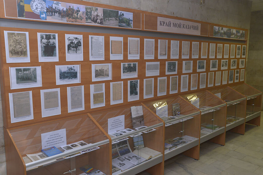 Эксклюзивные, познавательные экспонаты представлены на документальной выставке «Край мой казачий» в государственном казенном учреждении «Центр документации новейшей истории Волгоградской области», которая приурочена к 450-летию служения донских казаков российскому государству. Ее небольшая экспозиция имеет уникальную особенность. В отличие от традиционных выставок, посвященных казачеству, где в основном демонстрируются старинные предметы быта или же рассказывается о значимых героических периодах истории Всевеликого войска Донского, на стенде «Центра документации новейшей истории Волгоградской области» представлены малоизученные документы советского периода XX века. Широкому кругу почитателей казачьей летописи они неизвестны. Ведь современные исторические исследования о жизни и событиях Области войска Донского посвящены в подавляющем большинстве периоду от рождества Христова до завершения гражданской войны, а также годам Великой Отечественной войны. А вот временные отрезки 1922 - 1