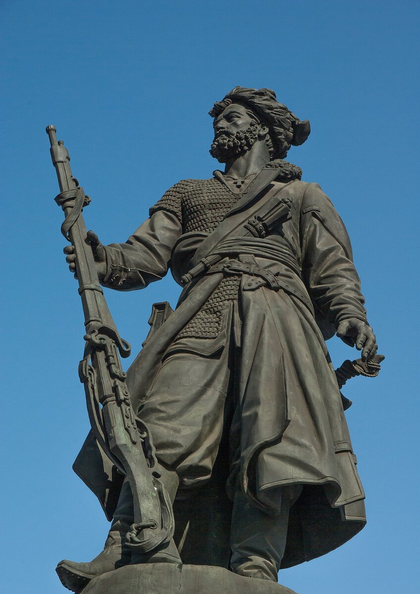 В XIV-XVII вв. одежда казаков напоминала татарский костюм. Широкие шаровары на учкуре (шнуре), который их поддерживал, бешметы-полукафтан до колен и с закрытой грудью. Поверх бешмета надевался чекмень - приталенный суконный кафтан, застёгивавшийся на крючки, а широкие рукава были стянуты на запястьях в манжеты. Носили его с поясом, на котором висела сабля. Нередко рукава в верхней части имели разрез, позволяющие закинуть их за спину. Выходной чекмень был немного подлиннее, по краям обшивался парчой или галуном (яркой тесьмой для отделки военной формы) и носился в распахнутом виде поверх холодного оружия. У запорожцев чекмень назывался "керея". На голове носили шапку из бараньего меха, на Дону её называли "трухменка". Яицкие (уральские) казаки носили суконные колпаки с меховой опушкой. У донских и запорожских казаков суконный верх шапки иногда свисал в виде клина. С 1801 для донских казаков царским указом была установлена специальная военная форма. Однако, ещё долго сохраня