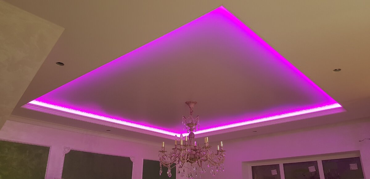 Всем привет! Сегодня расскажу о двухуровневых потолках с подсветкой с углами 90 градусов На натяжном потолке 90 градусов сделать не так просто,есть несколько способов, есть способ с использованием двухстороннего скотча, специального, есть способ выкройки шва, ( второй вариант упустим не очень красиво получается) на первый вариант используется двухсторонний скотч производство Германия, очень крепкий но бывали случаи при плохой обработки металла со временем начанал отклеиваться, приходилось переделывать. Горький опыт)) на будущее всем, если будете заказывать двухуровневые потолки лучше углы скруглить получается тоже очень красиво. Подписывайтесь на мой канал расскажу много чего интересного, всегда рад буду помочь проконсультировать.