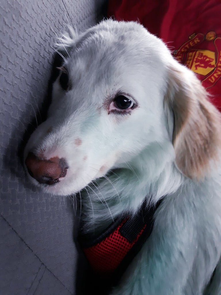 ДРУЗЬЯ ! Не выдержало сердце волонтера Виктории П. и поехала молодая мама забирать с КП зеленую красавицу Луизу !!! Накупила девушка ей вкусняшки, набрала еды и поехали они на передержку. Буду теперь она пытаться организовать счастье девочке Луизе ))) Нам еще надо будет посетить глумера, навести красоту Луизе, смыть всю эту зелень. Осмотрел нас ветеринар, собака совсем молодая год, полтора от силы, здорова. Очень ласковая, добрая девочка . В неё невозможно не влюбиться. Передержка обходится около 100 сутки и плюс питание . У Виктории П. в данный момент три собаки на платной передержке, это Энтони , Филька и Луиза. Для женщины волонтера это неподъемная сумма просто. Будем благодарны любой помощи для хвостиков.