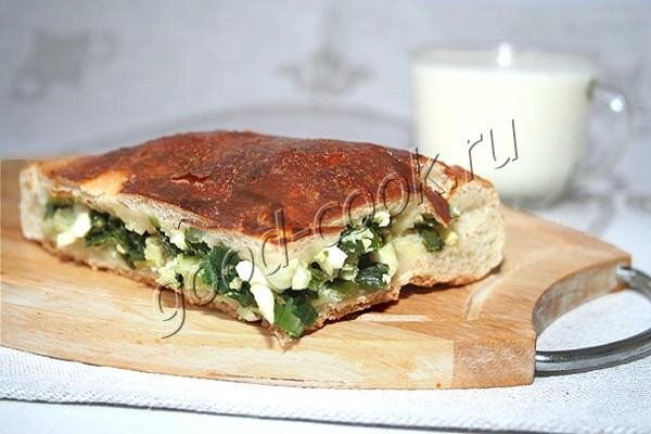 - Классический пирог. Его продают во всех пекарнях города. Но зачем его покупать, если легко и просто можно сделать дома. Пирог отменный - воздушное тесто и суперароматная солоноватая начинка. При приготовлении этого пирога есть небольшие тонкости. Обычно им учатся девочки у своих мам, когда они вместе готовят. И потом уже в рецептах эти мелочи не упоминают. Я побуду вашей мамочкой и расскажу, что нужно сделать, чтобы пирог можно было приготовить как можно проще. 1. Этот пирог не относится к разряду тех, у которых чем больше начинки, тем вкуснее. Так как лук обладает довольно резким вкусом, избыток начинки ухудшит вкус пирога. Сладковатое тесто должно уравновешивать яркость лука. 2. Яйца в пироге также играют роль баланса для лука. К тому же именно они придают сытность. Поэтому в данную начинку можно положить много яиц - ими пирог не испортишь. 3. Самое главное. Лук обязательно нужно осадить. Иначе при формовке пирога лук будет топорщиться и вываливаться, а на выходе от него останется лишь тонкая прослойка. Осаживать лук можно тремя способами: подогреть в микроволновке, слегка поджарить на сливочном масле, и, как в этом рецепте, размять пестиком. 4. Зелёный лук для пирога нужно выбирать, а не покупать то, что есть. Летом часто продают большие тёмно-зелёные побеги лука, твёрдого на ощупь и очень горького на вкус. Эта горечь передастся и пирогу. Поэтому если вам попался такой горький и сильно пахнущий лук, то его нужно класть меньше, а яиц больше, чем в рецепте. Зимний чахлый и бледный парниковый лук больше подходит для пирога. Такого лука можно положить много, его острота при нагревании исчезает.