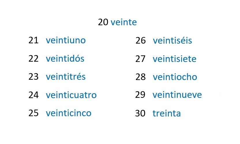 Все очень просто. Veinte (двадцать)плюс tres(три) и получается veintitres (двадцать три).