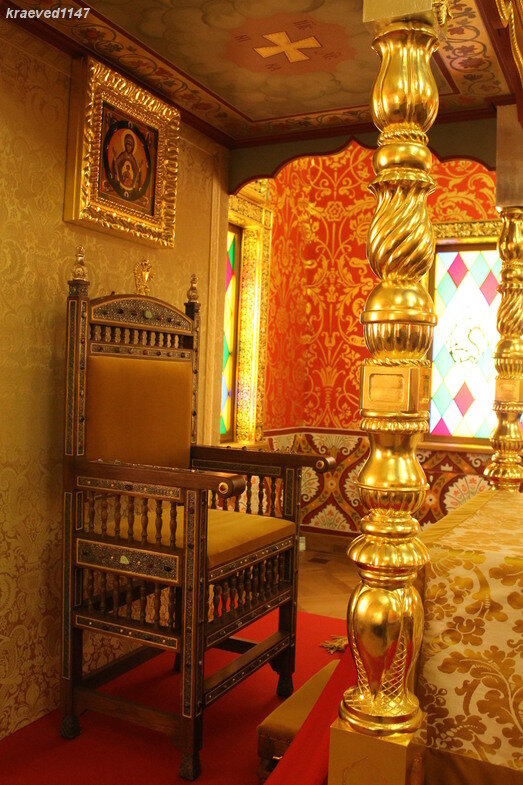 Коломенский дворец служил главной царской резиденцией наряду с Кремлём. Здесь принимали иноземных послов и устраивали пиры. Государь обычно трапезничал в одиночестве, ведь он был "помазанником божиим" и его земную природу не стоило выставлять напоказ. На пирах царь присутствовал в исключительных случаях. Если государь приходил на пир, то он садился за особый стол. Этот стол звали троном. Царь сидел за столом в одиночестве. Над троном видна икона Богородицы. Этот обычай пришёл из Византии и означает, что государь - лишь орудие в руках небесных правителей. Участники пира рассаживались за столами, стоящими вдоль стен. По правую руку от государева трона были более почётные места, по левую - менее. Если это был посольский приём, то по правую руку сажали главного посла. Однако иноземцы садились вперемешку с боярами. Последние старались максимально напоить иноземцев, чтобы те выболтали важную, а то и секретную информацию. В свою очередь места "в скамье", то есть у стены были более почётными,