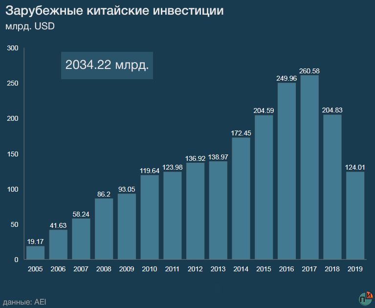 Как одна из главных экономик мира, сегодня Китай имеет огромные амбиции в плане работы с зарубежными рынками. Его инвестиционные интересы охватывают всю планету, а инструментами экономической экспансии выступают как государственные инициативы, вроде масштабной программы "Один пояс, один путь", так и деятельность частного капитала. Всего начиная с 2005 года Китай и китайские компании инвестировали в экономики других государств более 2 триллионов долларов. Лишь несколько стран за этот период не были замечены в получении китайских денег.