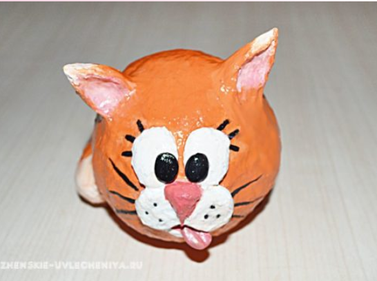 Основу этой милой игрушки составляют старые газеты. Не верите? Тогда следуйте мастер-классу.Сделанная своими руками кошка из папье-маше ничуть не уступает по красоте и добротности декору, изготовленному из дорогих материалов. Пожалуй, единственный недостаток этой техники – необходимость сушки, удлиняющая работу и результат. Немного изменив мордашку, несложно получить другого зверка – лисичку, медвежонка, собачку или ежика. Если не уверены в своих способностях к лепке, сделайте для начала разноцветный шар. Короткий список материалов Для изготовления кошки из папье-маше по мастер-классу вам понадобятся: Пошаговая инструкция для начинающих В первую очередь необходимо создать основу фигурки. Для этого сомните несколько листов газеты в небольшой аккуратный шар и закрепите края скотчем. Затем оберните бумажный шар в один слой фольги, стараясь загладить и скрыть неровности газеты. Чтобы придать основе дальнейшую форму, подготовьте массу для папье-маше. Потребуется нарезать любую мягкую бумагу