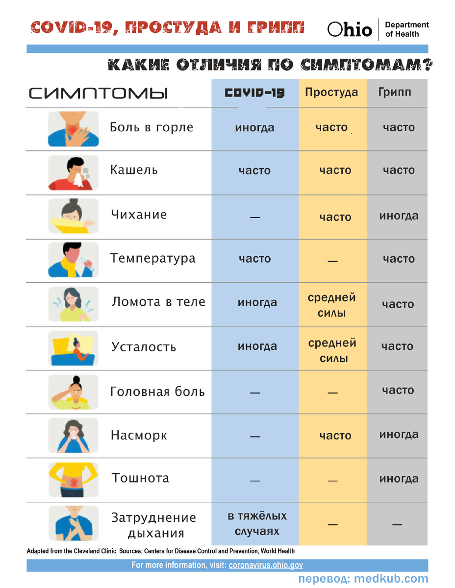 Отличия в симптомах короновируса, гриппа и простуды