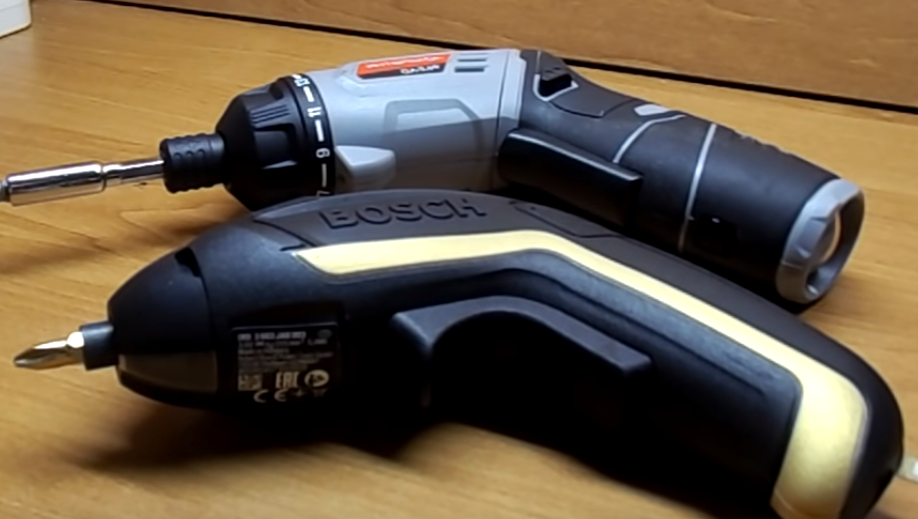 Всем привет, в прошлый раз я сравнивал 2 болгарки, дешевую и дорогую, а в этот раз решил залезть в закрома и нашел для обзора 2 электрические отвертки, одну мне подарили на день рождения, это бош и я про неё благополучно забыл, потом купил себе уже интерскол, и спустя пол года думаю надо сравнить их, лишним то точно не будет. Итак, по сути они очень похожи, дизайн почти одинаковый, единственное что я хочу сказать от себя, это то, что интерскол удобнее лежит в руке, прям выпускать не хочется, а это плюс перед дорогим бошем. Из общего хочу сказать, что они обе имеют подсветку рабочей зоны, обе с пистолетной формой, и так же есть на обеих индикатор зарядки. А круто то, что бош можно заряжать через Micro USB, а так же есть несколько режимов, то есть достаточно легко нажать на кнопку (курок) и сначала включится подсветка, и нажав сильнее, она уже начинает работать. В то время, у интерскола удобнее индикатор зарядки, там 3 деления, а у боша горит только когда он садится, плюс ручка на ин