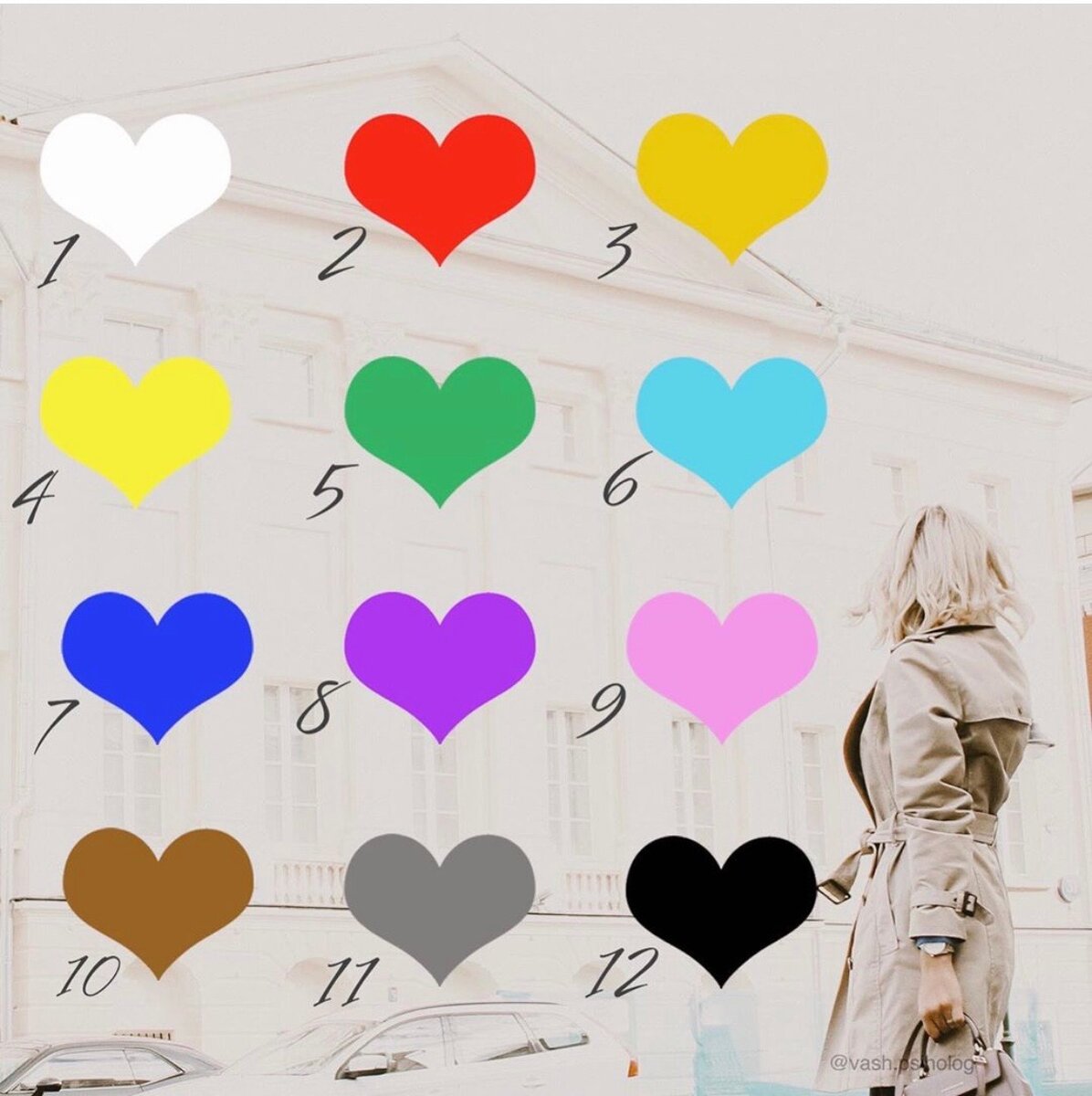 Тест покажет, чего вам не хватает сейчас. Не ориентируйтесь на сердечки, я их сделала, чтобы создать настроение. Ориентируйтесь на цвет. Старайтесь выбирать не то, что любите всегда, а какой сейчас в данную минуту вам запал в душу и хочется именно его. Результаты под картинкой. ◾️1. Белый цвет. Хочется очиститься. От каких навязчивых мыслей или грязи в жизни? Вы ругаете себя за что-то? Или недовольны сейчас собой? Подумайте над этими вопросами, как они вам откликаются. Кстати, одежда белого цвета отчасти поможет чувствовать себя лучше. И повлияет положительно на внутреннее состояние. ◾️2. Красный цвет. Есть какое-то воинствующее настроение? Когда хочется красного, то есть желание лидировать, показать уверенность в себе. Возможно, у вас сейчас в жизни такой период, когда нужно заявить о себе, проявить решительность, волю и уверенность в себе. Красный предмет гардероба частично поможет удовлетворить такую потребность. Он безусловно поработает на самооценку. Но прежде рекомендую погов
