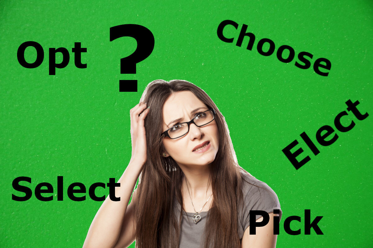 Opt тоже означает "Выбирать". Тут уместно вспомнить слово Option, означающее "Опция, Выбор". То есть тут речь идёт о выборе из двух опций, чаще всего идёт выбор не какого-либо предмета, а выбор того или иного действия, хотя не обязательно. В любом случае если вы скажете Choose, то тоже не ошибётесь.