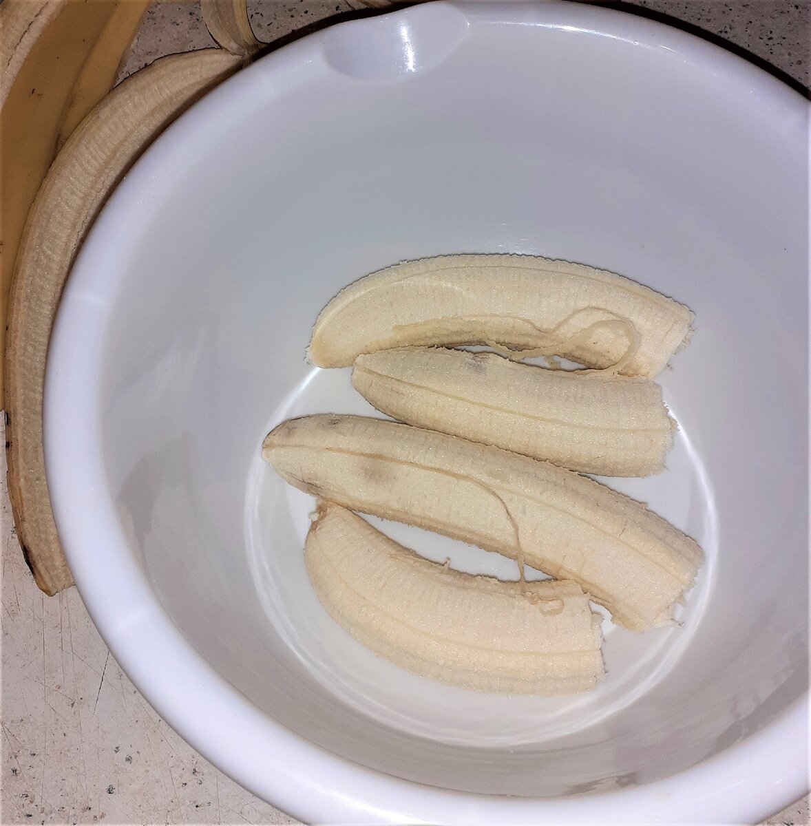 Чищенные бананы разминаю в кашу, добавляю рис и изюм.