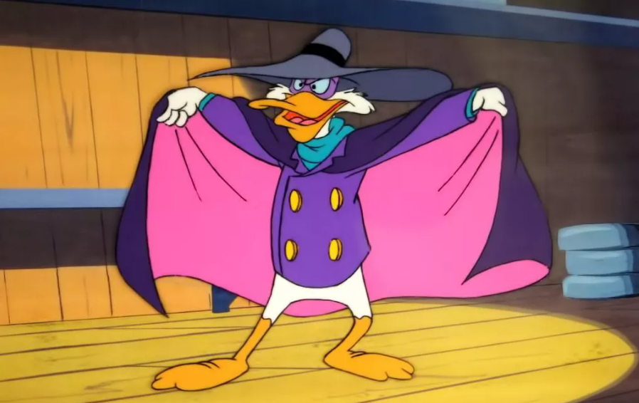 Мультсериал, повествующий о приключениях супергероя-селезня по прозвищу Чёрный Плащ. Только одно его появление заставляло нас улыбаться. Он ведет борьбу со злодеями, представляющими смертельную угрозу для города Сен-Канар. В этом нелёгком деле ему помогают горе-пилот и механик Зигзаг МакКряк и непоседливая Гусёна.