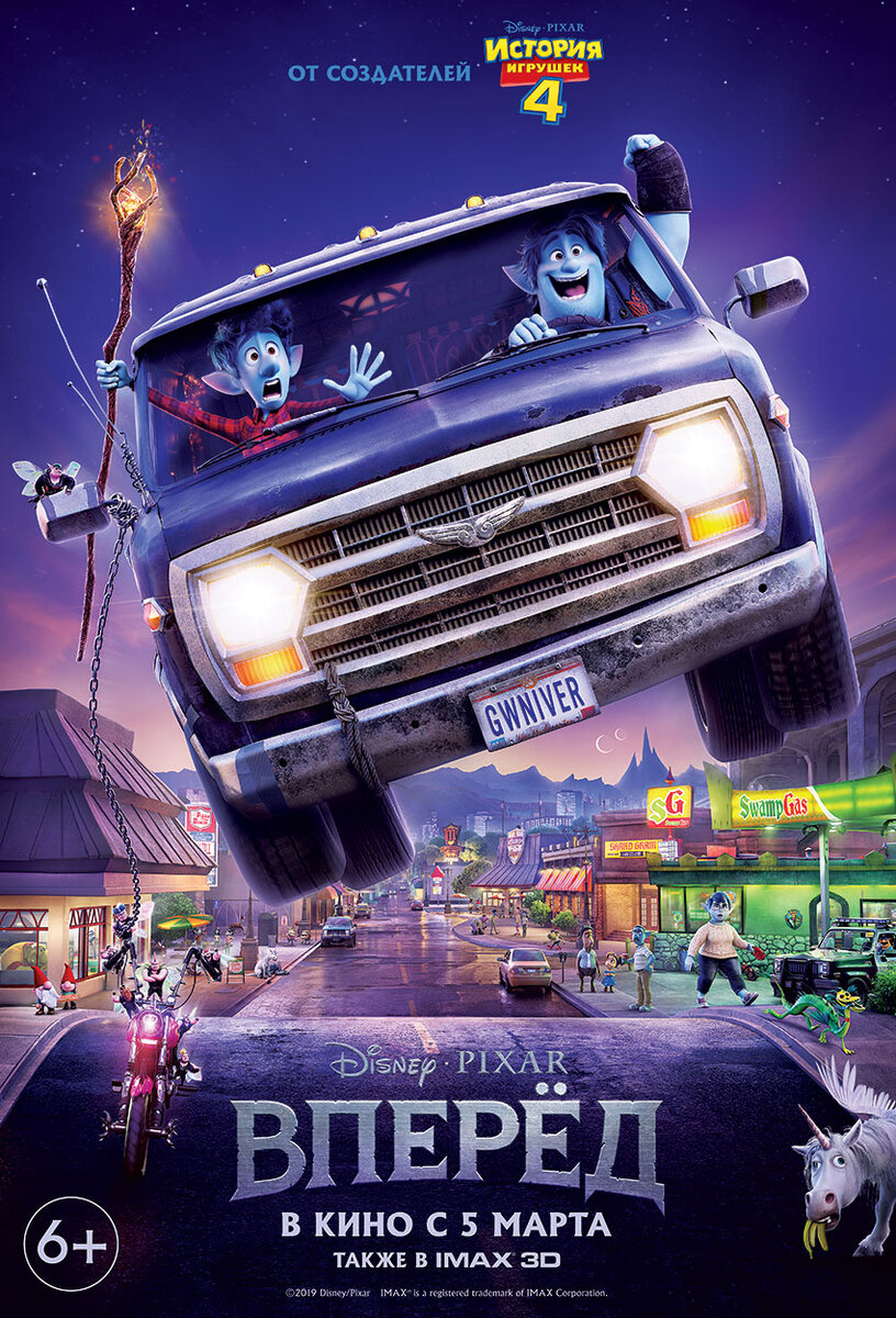 Вперёд (Onward, 2020, реж. Дэн Скэнлон, мультфильм, фэнтези, комедия, приключения, семейный, США) Наверное, все же изначально мультфильмы как вид искусства служат средством для семейного отдыха, а уже потом как инструмент, с помощью которого авторы доносят зрителю дополнительные смыслы. Мультипликация – мощное оружие, позволяющее рассказывать истории намного шире, чем стандартный художественный фильм, сейчас к ним в этом плане приблизились сериалы, но им все равно до возможностей «мультиков» далеко. Помимо каких-то авторских анимационных проектов, качество в рамках творений со смыслом всегда выдерживала и выдерживает компания Pixar, ибо тот же Disney начинает тонуть в погоне за долларом. «Вперёд» Дэна Скэнлона – фильм, которому будут рады и взрослые, и дети. Качественная, бодрая, милая, веселая анимация, ведущая свое повествование в некоем альтернативном мире, где жителями являются разнообразные сказочные существа – от единорогов, что бродят по улицам и копаются в мусоре вместо бродя