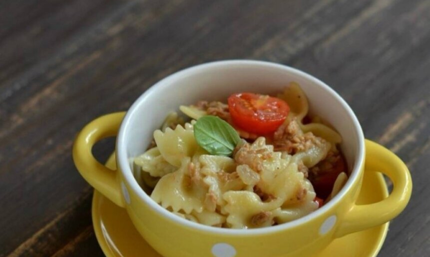 Тратить долгие часы на готовку необязательно. Ведь есть сытные и вкусные рецепты, которые упрощают жизнь. Здесь я предлагаем один из таких. Вы узнаете, как приготовить простой ужин на скорую руку. ИНГРЕДИЕНТЫ Макароны - 250 Грамм Тунец консервированный - 150 Грамм Помидоры черри - 150 Грамм (подойдут и простые помидоры) Лук репчатый - 60 Грамм Масло растительное - 20 Грамм Шаг 1 Лук очищаем от шелухи и режем небольшими кубиками. Жарим на сковороде пару минут. Шаг 2 Разрезаем помидорки черри пополам. Добавляем их на сковороду к луку, все вместе жарим еще минуты 4. Шаг 3 Отвариваем макароны (пасту). Смешиваем их с овощами на сковороде. Шаг 4 Открываем банку консервов с тунцом. Добавляем их в макаронную смесь. Шаг 5 По желанию украшаем листиком базилика или любой другой зеленью. Наша вкуснятина готова, можно подавать её на стол!