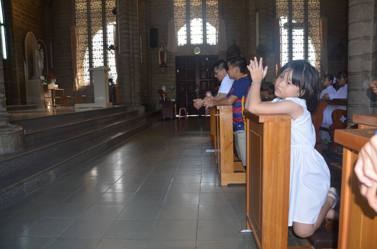 Кафедральный собор в Нячанге – это след французского колониального прошлого Вьетнама и религиозно-культурное настоящее. В храме находится резиденция епископа католической епархии Нячанга, трижды в день происходят католические службы: в 5, 6.30 и в 16.30. В это время храм открыт для посещения всем желающим. Из Европейского квартала добираемся на автобусе № 4. Едем до кольца с «глобусом» в центре. Пересекаем дважды проезжую часть дороги и мы перед храмом. На соборной площади вас встречает мраморное изваяние Девы Мари с узкими азиатскими глазами, к ней устремлены взоры ангелов и оказавшихся рядом прихожан. И площадь, и храм богато украшены цветами. Проход к храму бесплатный. Вокруг собора красивая прогулочная зона. В керамических сосудах - ухоженные растения. Среди мраморных скульптур доминирует изваяние Христа. Здесь излюбленное место фотосессий вьетнамских молодожёнов. Кстати, у них принято делать фотосессии за месяц-два до свадьбы. Пышное красивое платье невесты, а под ни