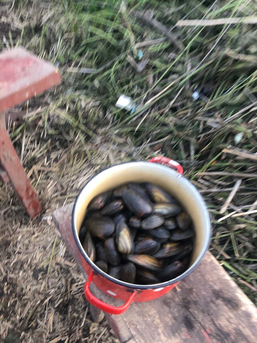 Делюсь опытом приготовления речных ракушек. На днях вернулся из Мордовии, куда ездили с друзьями в деревню на несколько дней отдохнуть. Впечатлений масса, поскольку жили в спартанских условиях, спали в палатке, готовили на костре, мылись в речке. За эту поездку я провел несколько кулинарных экспериментов, одним из них было приготовление простых речных ракушек или мидий, кому как привычнее. Выловили речных "гадов" в реке Мокша, оттуда и название сего блюда: УСТРИЦЫ ПО-МОКШАНСКИ. Собрать пол ведра ракушек было не сложно, прямо у берега их уйма и в основном крупные особи. Процесс приготовления от начала до конца занял менее 30 минут. Ракушки помыли в чистой воде, переложили в кастрюлю, залили водой и добавили ложку соли. Готовили на мангале, так что вода быстро нагрелась и раковины раскрылись. долго не ждем, сливаем воду, немного остужаем, чтобы не обжечь руки и вынимаем устричное мясо из ракушки. Резких запахов не ощутил. Те, кто спокойно ест речную рыбу - должны попробовать. Да