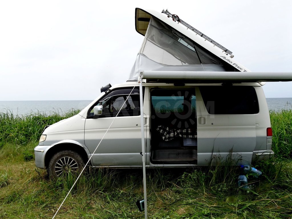 Отличается она от стандартных минивэнов подъемной крышей что в сложенном состоянии позволяет упаковать не которые не объемные вещи,но в разложенном виде это двухместная комфортная палатка на крыше вашего автомобиля!!!