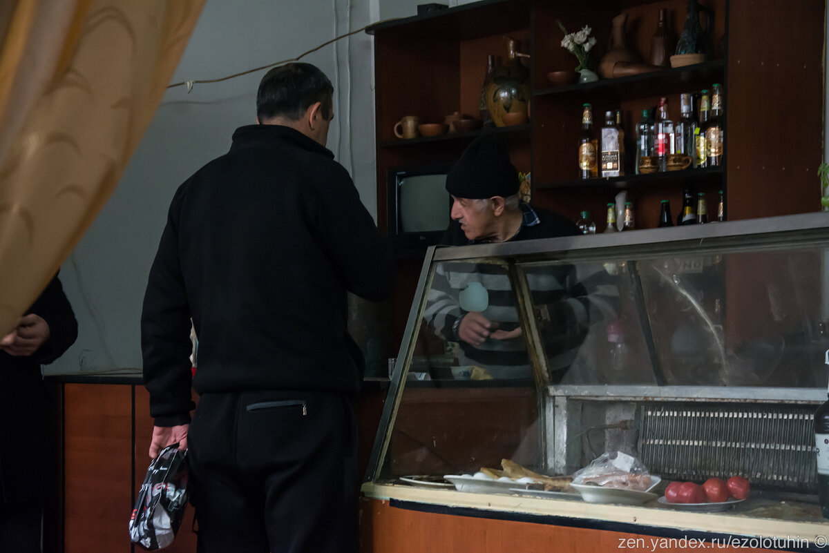 Интересная история недавно произошла со мной в Грузии в одном небольшом стареньком кафе. Там вообще такой интересный формат заведения, сохранившийся с советских времен. Местные мужики заходят, выпивают водку, расплачиваются и уходят по своим делам. Я сфотографировал там такого местного мужика с водкой. Мужик сразу же подошел ко мне и потребовал удалить фото, а потом он узнал, что я приехал из России, и захотел меня угостить. Он оплатил мне хинкали и лимонад и долго рассказывал, что любит русских людей. Чтобы более ярко представить атмосферу заведения, в котором все произошло, покажу это фото. Это вход в старенькое кафе, которое работает в этом доме уже много десятков лет. Интерьер кафе и даже шторы между залами тоже не менялись несколько десятков лет. Это оказалось очень атмосферное и приятное место с прекрасными гостеприимными хозяевами. Я решил пофотографировать это место и попутно с этим сфотографировал внутри заведения обычного местного мужика с водкой, который зашел выпить. Мужик