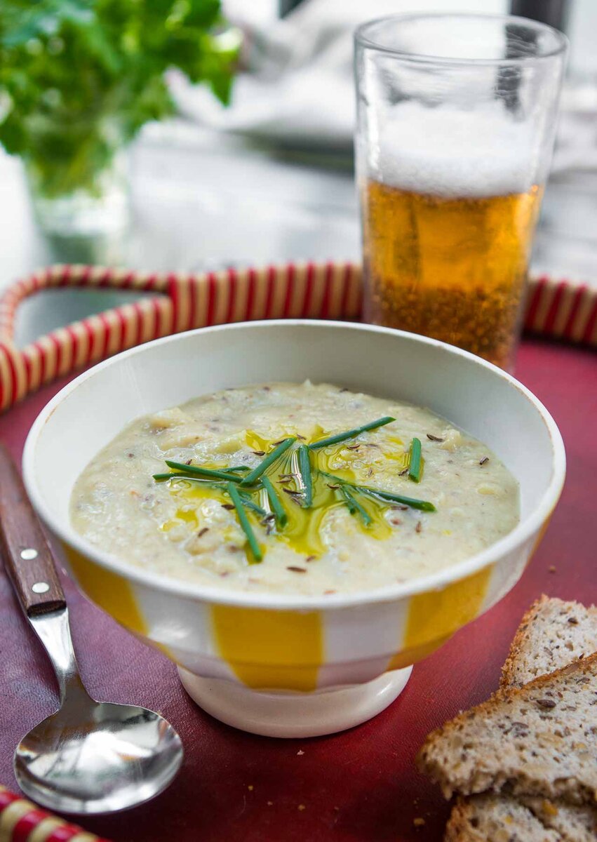 Я сделал это с рисовым молоком, но можно использовать растительное «молоко» или обычное молоко. На данный момент молоко любого вида может быть дороже. Если вы используете приобретенный в магазине бульон, я рекомендую уменьшать количество соли при приготовлении супа, а затем подгонять ее по вкусу после добавления бульона. Другие варианты: вы можете проявить творческий подход и смешать воду с пивом, не газированным или газированным сидром (безалкогольным или твердым) или со сметаной, жирными сливками, чтобы заменить молоко. Если у вас нет тмина, их можно заменить, фенхелем, анисом, черным луком или сельдереем. Вместо этого вы также можете использовать свежие травы, такие как тимьян или укроп при приготовлении супа и / или в качестве гарнира. Обратите внимание, что масло с петрушкой должно пролежать около часа или двух, поэтому, если вы планируете подавать суп прямо сейчас, можете замочить петрушку в масле заранее. Масло петрушки не обязательно, но суп хорошо выглядит после добавления, это как вишенка на торте.