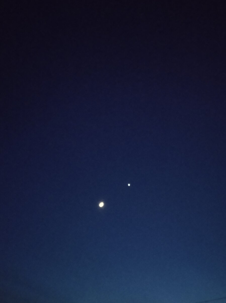 Я не могу вспомнить, видел ли я в детстве звезду рядом с луной. Каждый вечер эта странная звезда не дает мне покоя. После изучения этого вопроса, оказалось, что это планета- Венера. Эта яркая точка — Венера, вторая планета к Солнцу, которая за последнее время стала ближе к Земле. Лучше всего ее можно разглядеть в зимний период. Почему же так хорошо ее видно невооруженным глазом ? Планета совершает полный обход солнца каждые 224,7 дня. Венеру не видно, когда она находится в дальней стороне Солнца, но при постепенном ее приближении к орбите Земли, она становится ярче. Когда Венера приближается к нам, ее видно вечером, а когда она идет на удаление — утром. Каждая планета солнечной системы имеет свою историю, легенды и научные факты. Интересно, что эта единственная, которая вращается по орбите против часовой стрелки, но вокруг своей оси вращается по часовой. Помимо этого среди ученых биологов, астрономов и астрофизиков идут долгие споры о том, есть ли жизнь на Венере. Еще с древних