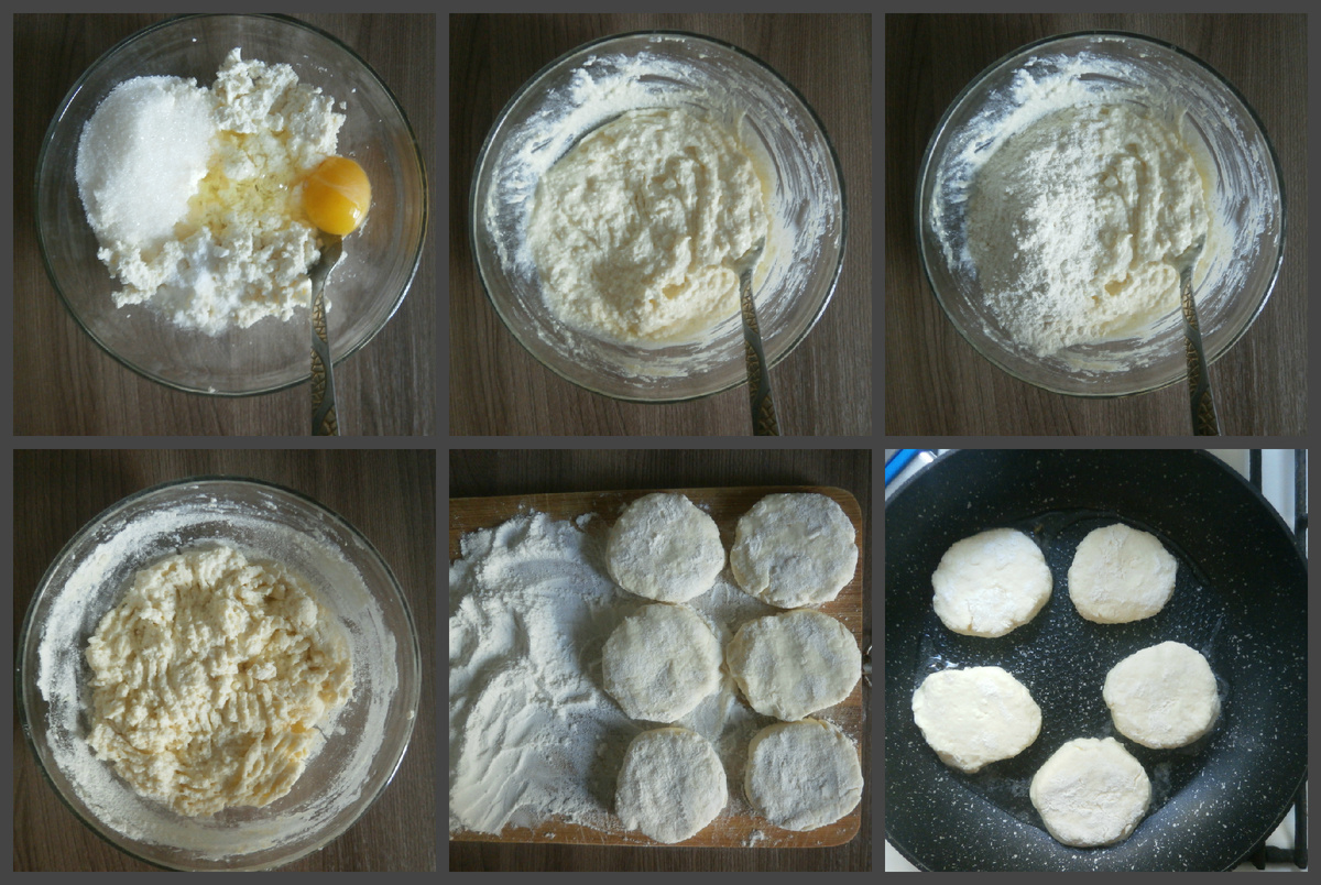 Как же сложно найти рецепт, в котором бы все было просто, быстро и результат бы нас порадовал. Но есть и хорошая новость, я нашла его за вас ;) Записывайте! Ингредиенты: -2 пачки творога (в идеале 5%-9% жирности) в брикетах или деревенский, сухой, но не зернистый. Творог должен быть как однородная масса для лепки. -1 яйцо -3-4 ст. ложки муки +пару ст.л. на обвалку -3 ст.л. сахара -ванилин (по желанию) -масло для жарки (любое, на ваш вкус) так же можно добавить в тесто изюм, сухофрукты, орехи, ягоды или любую начинку в центр сырников. Способ приготовления: Хорошенько размять творог вилкой до однородного состояния, добавить остальные ингредиенты, перемешать. Убираем тесто в холодильник минут 15-20. Формируем шарики и придаем им форму сырников, обваливаем с обеих сторон в муке и, не давая муке на сырниках размокнуть, отправляем на разогретую, смазанную маслом сковороду на средний огонь. Обжариваем по 1-2 минуты с обеих сторон (до образования золотистой корочки), убавляем огонь на мин