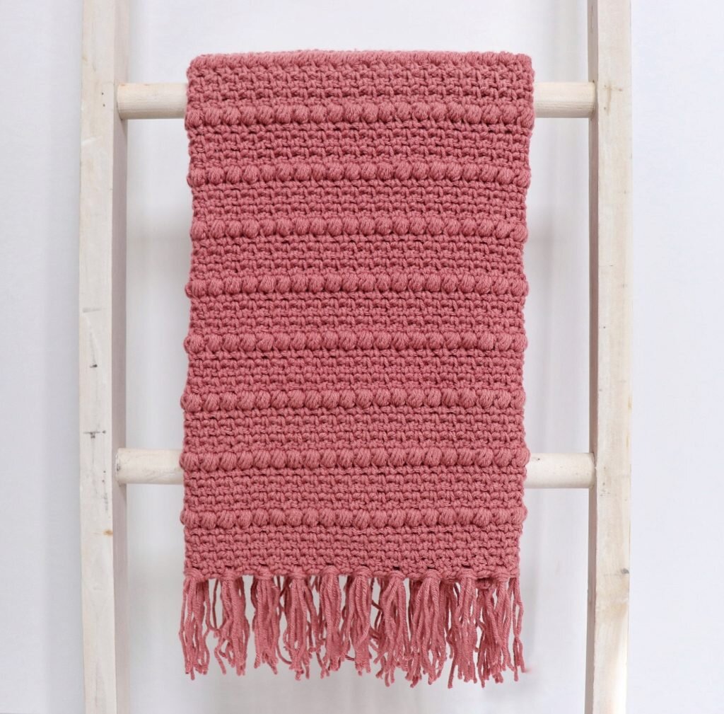 Вот какой плед я здесь нашла! Так он мне понравился, что решила и для вас сделать перевод его описания. В нём сочетаются красота, уникальность и простота. А ещё он в супер-модном бохо-стиле;) Всё, как мы любим! Так что это не просто плед для вашего малыша или подарок для какого-то ещё малыша:)) но и очень классное украшение интерьера! Вообще, думаю, малышам можно его и не отдавать, пусть висит себе вот так красиво и радует глаз;) Нам понадобится: 210 м. на 100 гр. (или 105 м. на 50 гр) Размер: 75 х 95 см. Сокращения: вп - воздушная петля ст. б/н - столбик без накида сс - соединительный столбик пышный столбик - делаем накид, вводим крючок в петлю предыдущего ряда, вытягиваем длинную петлю (размером примерно с 1 ст. с/н), повторяем ещё 3 раза, затем подхватываем рабочую нить и пропускаем её через все образовавшиеся петли на крючке, кроме последней, а затем провязываем и оставшиеся 2 петли. Ход работы: Набрать 120 петель (или любое чётное количество) Ряд1: в 4-ю петлю от крючка пр