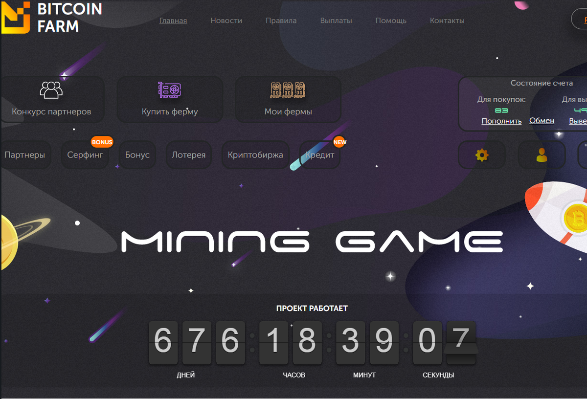 Проект работает более 650 дней сайт выплачивает можно пополнить баланс за ригестрацию по этой ссылке http://bitcoin-farm.org/?i=666593