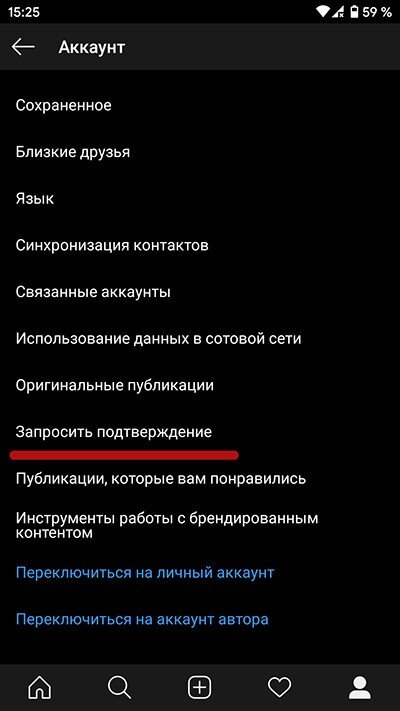 Необходимо открыть официальное приложение Instagram на мобильном устройстве, перейти на свою страницу, открыть главное меню (с помощью кнопки "МЕНЮ" в правом верхнем углу). Затем идём в "Настройки", конкретно - раздел "Аккаунт". Там выбираем действие - "Запросить подтверждение":