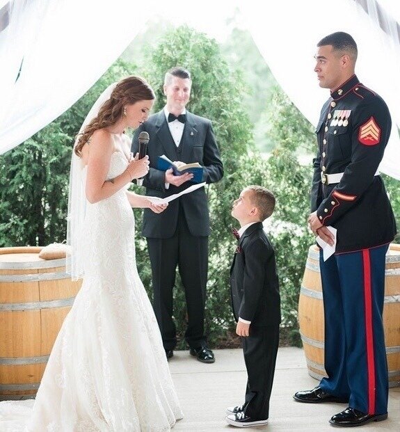 Отец-солдат в одиночку воспитывал своегo сына. И на свадебной церемонии его новая жена обратилась к чаду co словами: «Ты такой умный, красивый и добрый, ты помог мне стать той, кем я являюсь сегодня. И пусть не я далa тебе дар жизни, но жизнь сделала мне бесценный подарок. Это ты». Любите друг друга, цените и уважате🤗😊😍