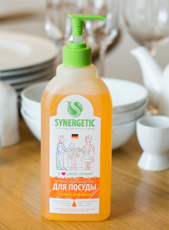 Здравствуйте!Сегодня хочу написать о товарах,которые в результате не одного дня тестирования,а намного более дней,получили все 10 баллов. Нам женщинам,у кого нет посудомоечной машины,приходится мыть посуду руками,по несколько раз в день,и ,естественно для нас российских женщин,не всех,конечно,но многих,так скажем дико перед этим одевать резиновые перчатки.Очень много моющих средств с жестким химическим составом,что вредят коже рук и полностью не смываются с посуды,наносят и экологии большой вред.Да,не спорю,есть один плюсик,приемлемая цена.Но сравнится ли цена с тем,что написано выше? В последнее время,в магазинах можно увидеть моющие средства с более щадящим химическим составом.. В Фикс Прайсе почти год назад появилось средство для посуды Синергетик. Синергетик-средство биоразлагаемое с антибактериальным эффектом для мытья посуды,детских игрушек,овощей и фруктов. Продукт сертифицирован международным институтом этической и экологической сертификации(ICEA) 95.2% натурального состава.