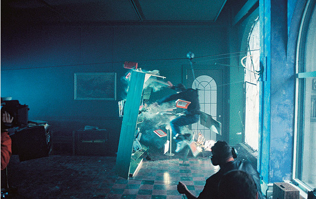 Трюк: пролет через 4 шкафа и 1 окнос последующим выпадением на улицу.