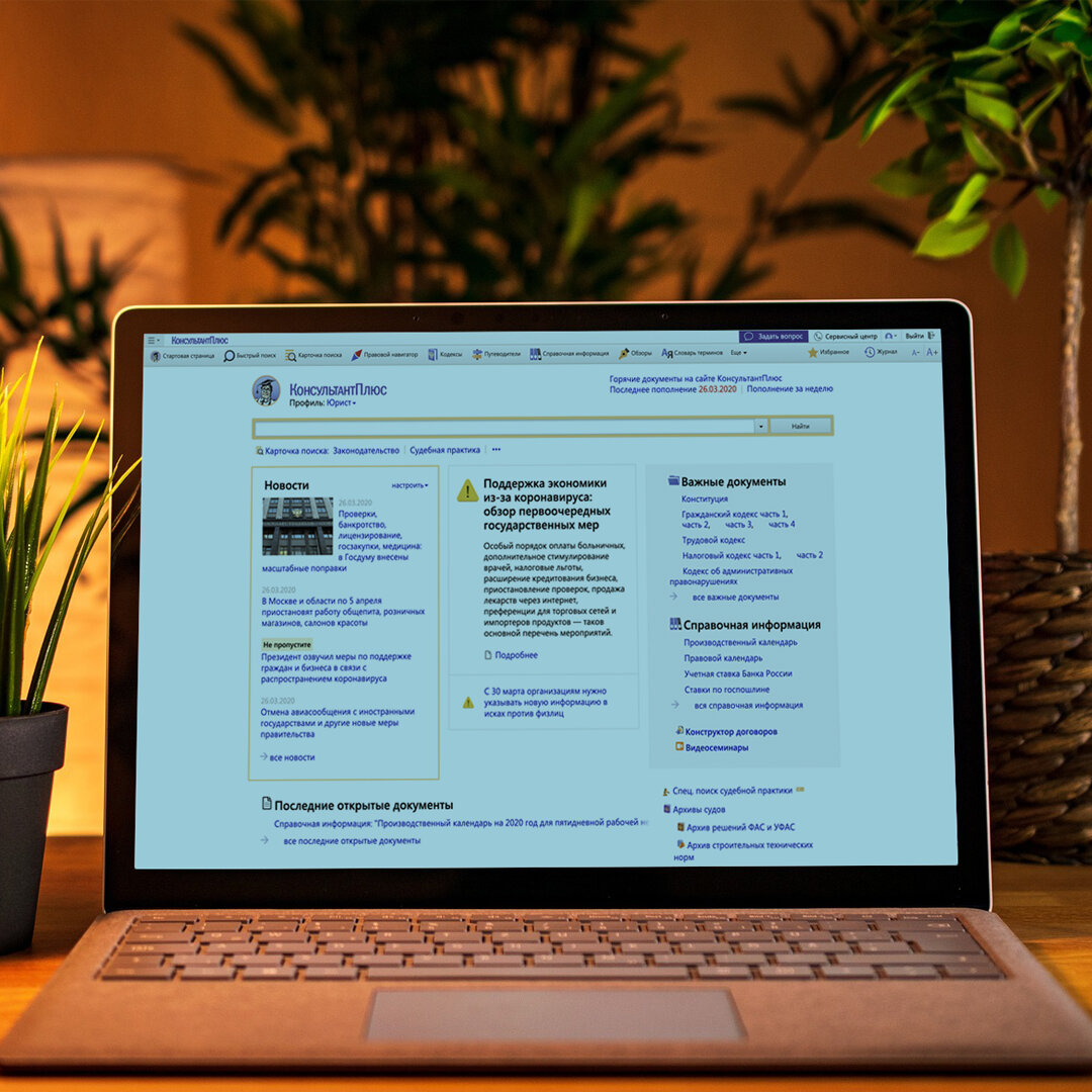 Уважаемые клиенты, партнеры, коллеги! КонсультантПлюс продолжает свою работу, несмотря на то, что неделя с 30 марта по 3 апреля объявлена нерабочей. Мы включаем в систему КонсультантПлюс новые нормативные акты, оперативно готовим обзоры событий и мер поддержки, а наши эксперты пишут практические инструкции по самым сложным темам. Все это сейчас – предмет первой необходимости для всех компаний и организаций. Мы знаем, что многие из вас тоже продолжат поддержку своих клиентов, если ваши продукты или услуги важны вашим потребителям в нынешней непростой ситуации. КонсультантПлюс – это оперативная и надежная информация, которой пользуются сотни тысяч организаций по всей стране. В КонсультантПлюс вы найдете самые горячие разъяснения, как оплатить больничный на карантине, как организовать дистанционную работу, как оформить «нерабочую» неделю, и многое другое по теме коронавируса и по всем остальным важным вопросам. В наших офисах приняты все необходимые меры для стабильной работы, строго соб