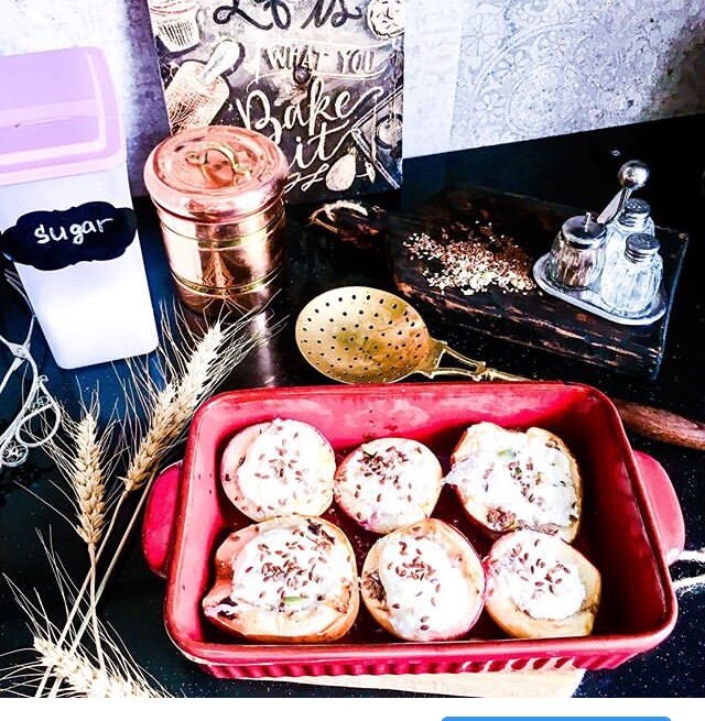 Запекаем примерно 30 минут при температуре от 180-200 градусов. Обычно я опять же запекаю вечером, а утром разогреваю. Сверху можно посыпать семечками льна.
