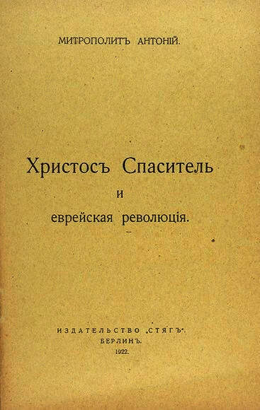 [1] Печатается по: Антоний, митрополит. Христос Спаситель и еврейская революция. Берлин, 1922.