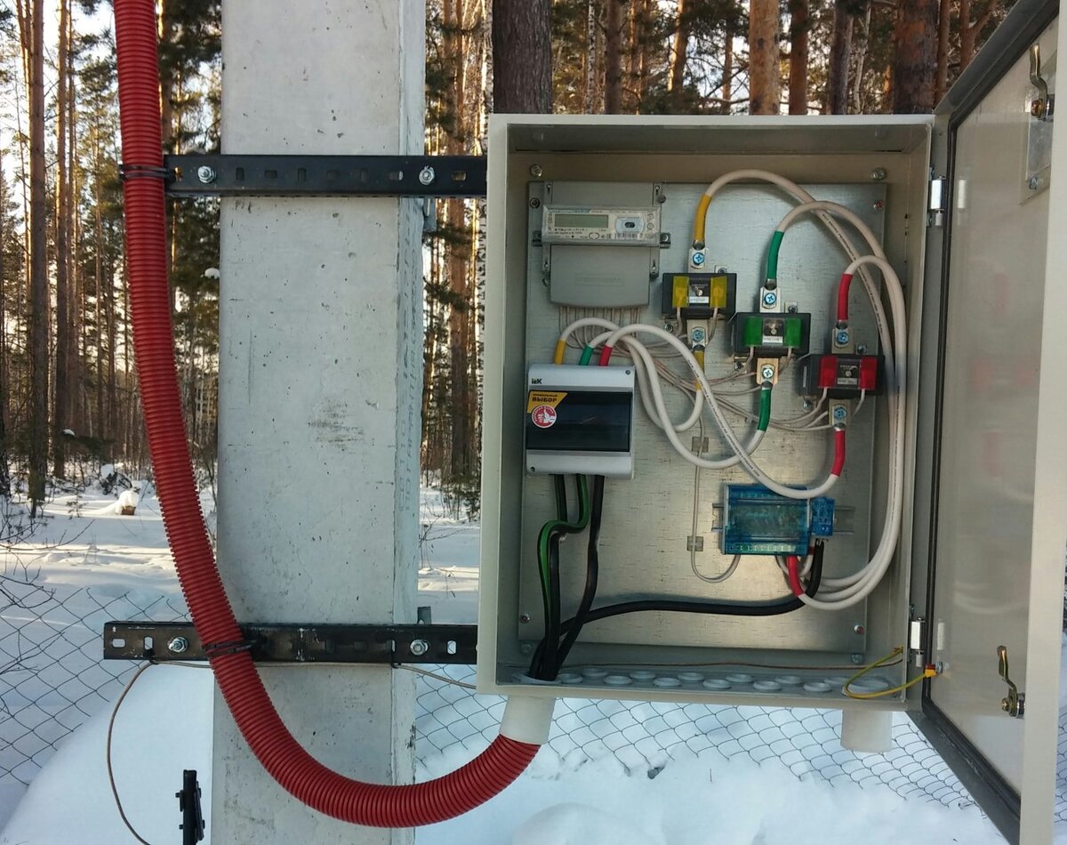 - Чтобы обеспечить безопасность для оборудования рекомендуется устанавливать щит на высоте 3 м и выше. Для этого используется специальная опора или стойка. Можно также крепить на фасад здания или забор. Так или иначе, место установки согласовывается с сетевой организацией.