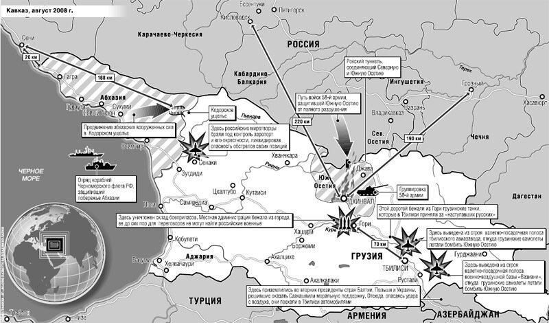 Вооруженный конфликт на территории Южной Осетии начался в августе 2008 года. В военных действия приняли участи вооруженные силы Грузии, самопровозглашенные республики Южная Осетия, Республика Абхазия и Российская Федерация. Обстановка резко начала наколятся 8 августа 2008 года в результате начавшегося обстрела со стороны Грузинских вооруженных сил столицы Южной Осетии, в результате чего предприняли попытку установления контроля над Южной Осетией. Уже днем того же дня (8 августа 2008 года) Президент Российской Федерации Дмитрий Анатольевич Медведев заявив, что Россия была, есть и остается гарантом безопасности объявил о проведении операции по "Принуждению к миру". В тот же день началось выдвижение двух тактических групп 58-й армии, дислоцированной за Кавказским хребтом, который отделяет российскую Северную Осетию от грузинской Южной. Колонны двигались через Рокский туннель, соединяющий территории двух стран в этом районе. В течение следующих нескольких суток российские войска совместно