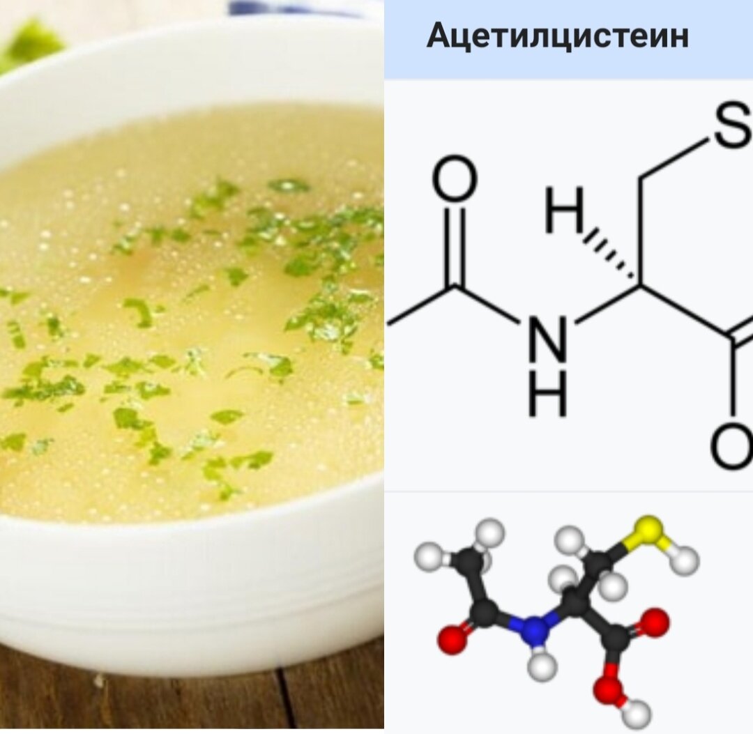 Большинство из нас знакомо с препаратами на основе Ацетилцистеина (АЦЦ, Флуимуцил и прочие). Их широко применяют у детей и взрослых при заболеваниях бронхов, легких с трудноотделяемой мокротой. Но мало кто знает, что ацетилцистеин также содержится в некоторых продуктах питания, которые так часто и интуитивно, следуя традициям употребляют в период болезни. ✔Вспомните советы от старых аптекарей и докторов: горячий куриный бульон ослабленным больным и в период простуд, гриппа, при воспалении легких и бронхитах. Куриный бульон содержит природный ацетилцистеин (АЦЦ) Биологи подтвердили наличие природного АЦЦ в концентрированном курином бульоне. АЦЦ может облегчить симптомы респираторных заболеваний, действуя как антиоксидант и разжижая бронхиальную слизь. Как антиоксидант АЦЦ восполняет недостаток глутатиона в легких, в результате чего воспаление снижается. Люди с хронической обструктивной болезнью легких испытывают окислительное повреждение и воспаление ткани легких, в следствии чего дых