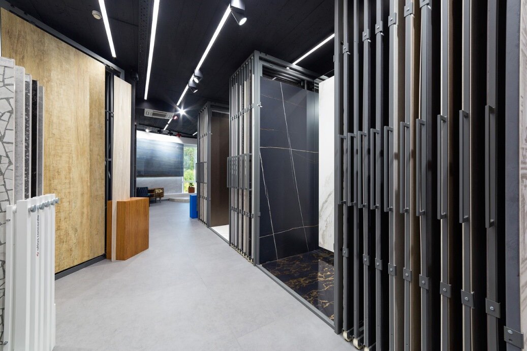 Здесь Вас ждет отдельный выставочный зал, полностью посвященный керамограниту крупного формата, где собран и представлен самый большой выбор образцов, которые можно увидеть вживую в одном месте. Для выставки были отобраны лучшие коллекции от ведущих фабрик производителей из Европы и России. Самые актуальные новинки и хиты продаж, в максимальн