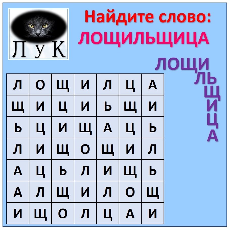 Кто сможет найти слово ЛОЩИЛЬЩИЦА? Головоломка в квадрате.