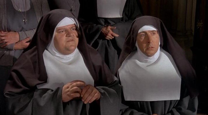 Парочка не придумывает ничего лучше, чем переодеться монахинями и скрыться в стенах женского монастыря. Они всерьёз считают, что это самое спокойное место на свете, но вскоре понимают, что ошибались – в тихой обители их ждет немало нелепых ситуаций и искушений.