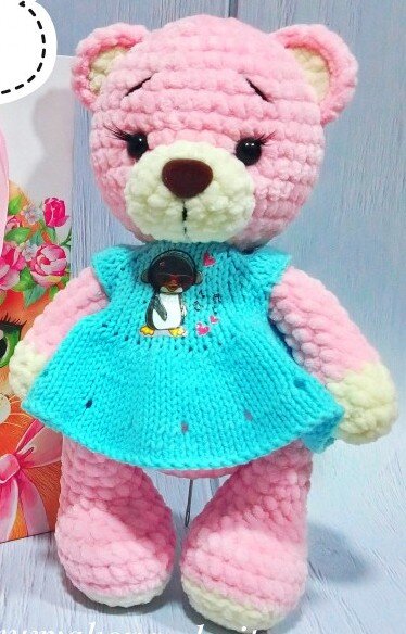 Условные обозначения Сбн-столбик без накида Ссн-столбик с накидом Вп-воздушная петля Пр-прибавка (два столбика без накида в столбик предыдущего ряда) Уб-(два столбика предыдущего ряда провязываются одним за переднюю стенку) Сс-соединительный столбик Голова 1р.-начинаем с 2-х воздушных петель, затем провязываем 6сбн. во вторую от крючка петлю (6) 2р.-6пр . (12) 3р.-(1сбн., пр.) *6раз (18) 4р.-(2сбн., пр.) *6раз (24) 5р.-(3сбн., пр.) *6раз (30) 6р.-(4сбн., пр.) *6раз (36) 7р.-(5сбн., пр.) *6раз (42) 8-13 ряды 42сбн (6 рядов) 14р.-(5сбн., уб.) *6раз (36) 15р.-(4сбн., уб.) *6раз (30) 16р.-(3сбн., уб.) *6раз (24) 17р.-(2сбн., уб.) *6раз (18) 18р.-(4сбн., уб.) *3раз (15) Туловище 1р.-начинаем с 2-х воздушных петель, затем провязываем 6сбн. во вторую от крючка петлю (6) 2р.-6пр. (12) 3р.-(1сбн., пр.) *6раз (18) 4р.-(2сбн., пр.) *6раз (24) 5р.-(3сбн., пр.) *6раз (30) 6р.-(4сбн., пр.) *6раз (36) 7-10 ряды 36сбн. (4 ряда) 11р.- (4сбн., уб.) *6раз (30) 12р.- 30сбн. 13р.- 6сбн., (1сбн., уб.) *6ра