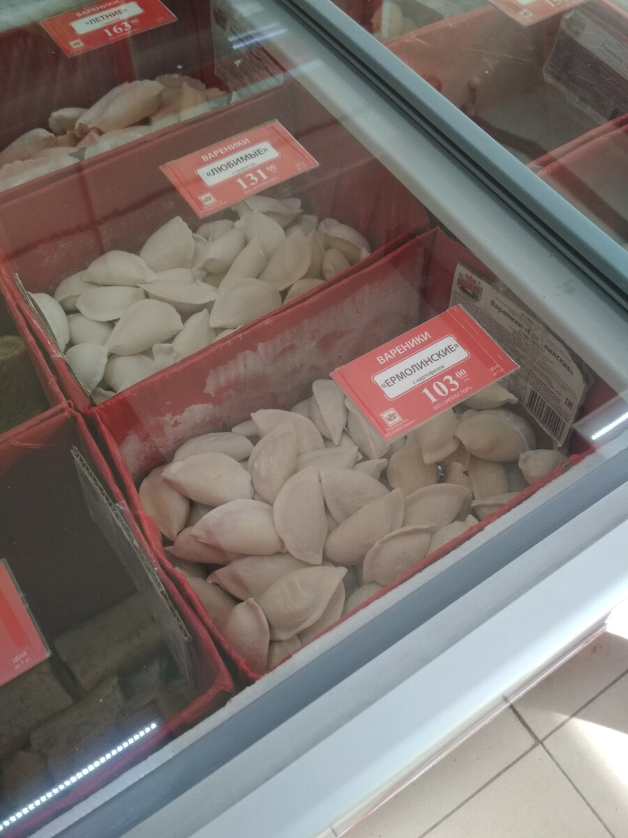 Ермолино - отличный магазин, куда постоянно заглядываю за покупками. Хоть некоторые комментаторы и пишут мне, что реклама, да только Ермолино не хочет мне платить за статьи и приходится раскошеливаться кровными. Зашла и вчера, чтобы купить наши любимые вареники с картошкой, да блинчики мамины с печенью. Перед выходной неделей в магазинчике набралось много народу, желающих забить свой холодильник вкусными замороженными полуфабрикатами.