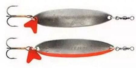 А вот блесна «ложка» ведет себя по-другому. Здесь более плоская модель, наоборот, активизирует игру – колебалка еще дальше уходит в стороны и даже начинает вращаться.