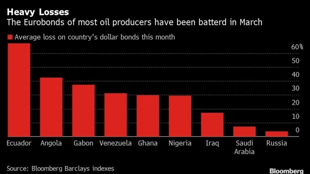 Многие из наиболее пострадавших - это Саудовская Аравия и бывшие партнеры России по ОПЕК +. Валюты от мексиканского песо до казахского тенге упали более чем на 14% в этом месяце, поскольку Россия и Саудовская Аравия начали войну цен на нефть перед лицом резкого падения мирового спроса. А доходность по государственным облигациям Анголы, Нигерии и Ирака взлетела до 30%, 12% и 14% соответственно, так как инвесторы беспокоятся о возможности реструктуризации и дефолтов.